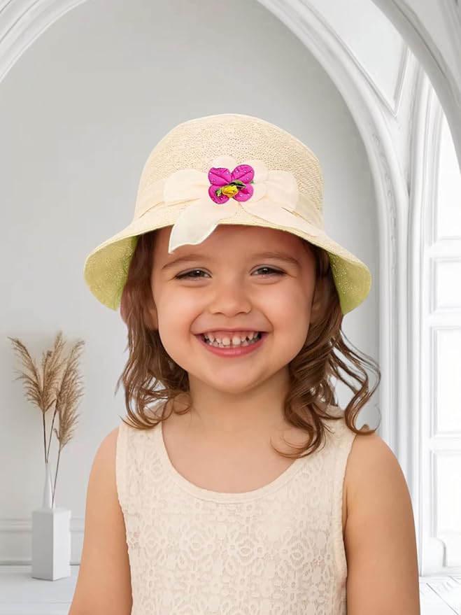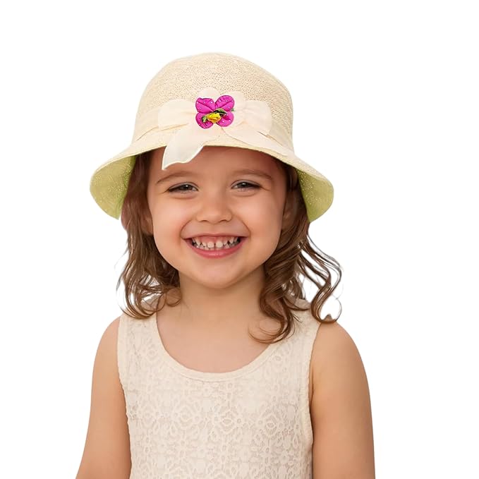 Trubliz Girls’ White Straw Hat with Lace Brim & Floral Bow