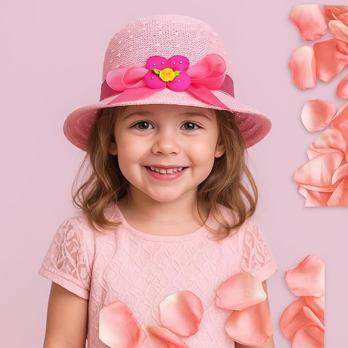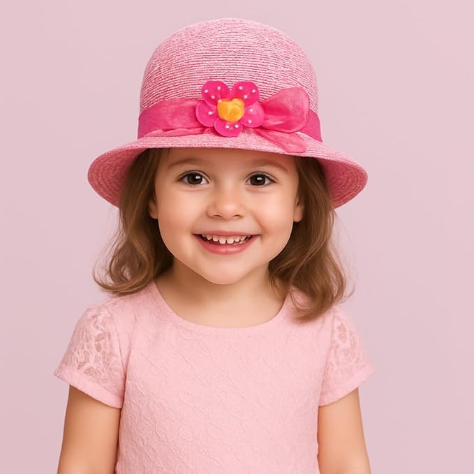 Trubliz Girls’ White Straw Hat with Lace Brim & Floral Bow